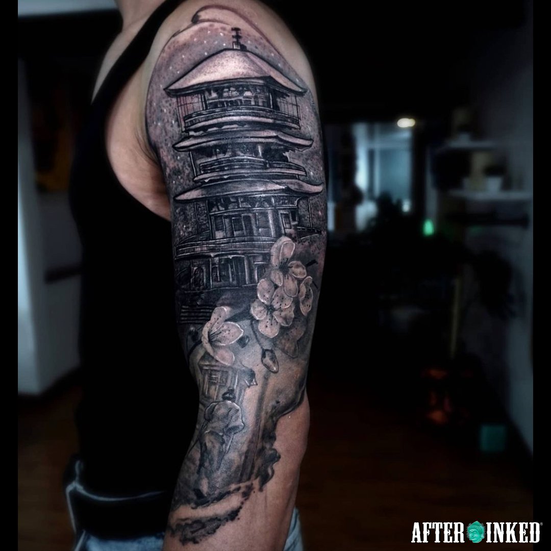 Pagoda Asian Temple Tattoo In 2023 Temple Tattoo Buddha Tattoo Sleeve Tattoos